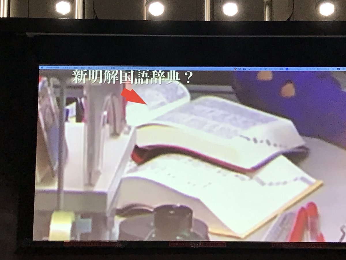 Jjmalone 昨日の国語辞典ナイトの 石原さとみの国語辞典は何か 問題ですが 単純に 角川類語 新辞典 じゃないでしょうか 机の左手側に見えてるんで 普通に考えるとありえないんですが ニューホライズンとか新明国が複数あるんだから類語新辞典も2冊
