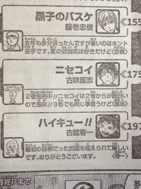 ジャンプ最新号の作者コメントより 古館さん目標達成おめでとうございますうううう 写真共有サイト フォト蔵