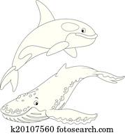 プレミアムベクター シロナガスクジラとシャチのイラスト