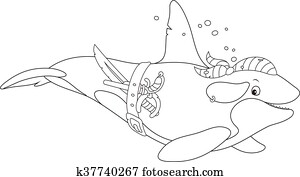 キラークジラのイラストの描画スタイル プレミアムベクター