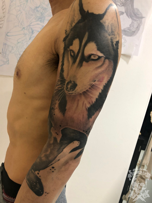 シャチのジャンプ 向日葵かすみ草 Stroker Tattoo