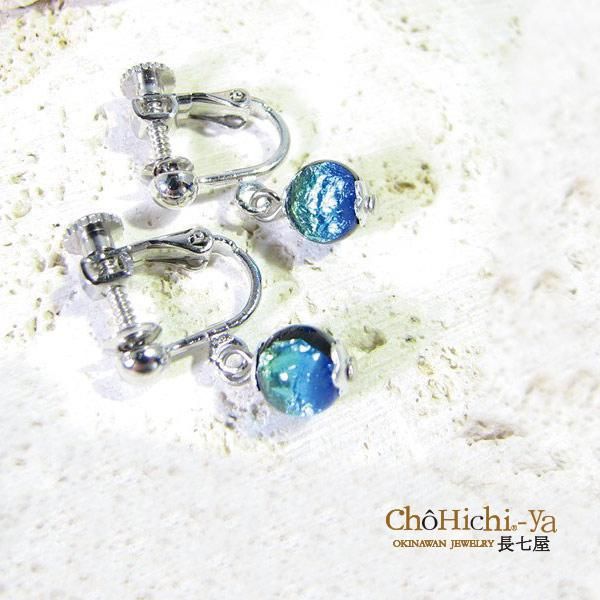 長七屋のケラマブルーイヤリング m Ky 35 沖縄のホタルガラス工房長七屋 オンラインショップ