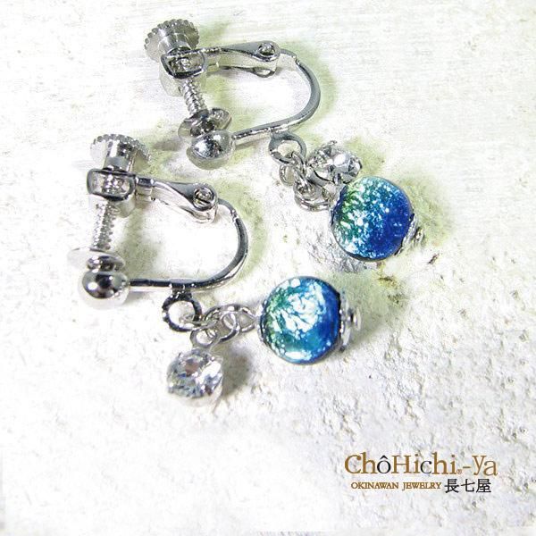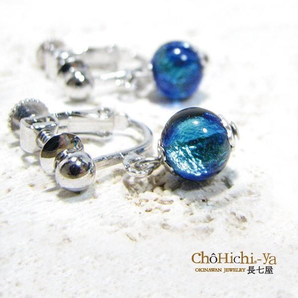 長七屋のモトブブルーイヤリング S My 2 沖縄のホタルガラス工房長七屋 オンラインショップ