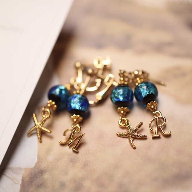 ホタルガラスのイニシャルチャームピアス イヤリング商品詳細ページ 沖縄clipマルシェ
