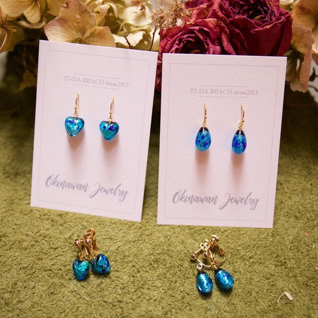 長七屋のヨミタンブルーイヤリング Yoy 11 沖縄のホタルガラス工房長七屋 オンラインショップ