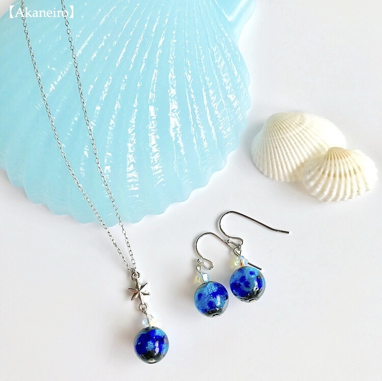 神秘の地球セットアクセサリー 琉球ガラスイヤリング ネックレス Akaneiro Tokyo