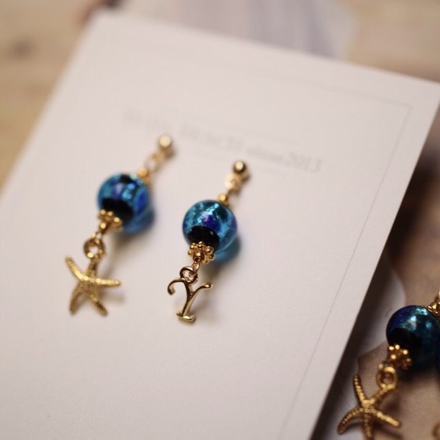 再販 沖縄 琉球ガラスと星の砂 ピアス イヤリング 夏 アクセ リゾート 揺れる ピアス Naco 通販 Creema クリーマ ハンドメイド 手作り クラフト作品の販売サイト