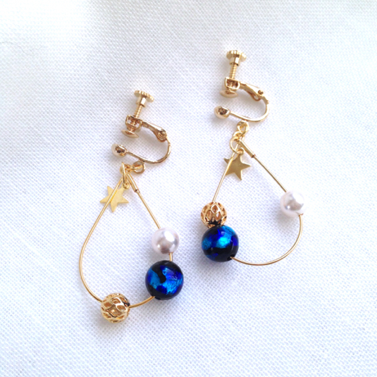 長七屋のケラマブルーイヤリング Ky 沖縄のホタルガラス工房長七屋 オンラインショップ
