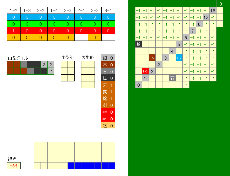 たまんちゅ ボドゲ会 てーげー オーディンソロ3人戦 右下から時計回りに 222 156 6 全員が0超えるのは難しい オーディンの祝祭