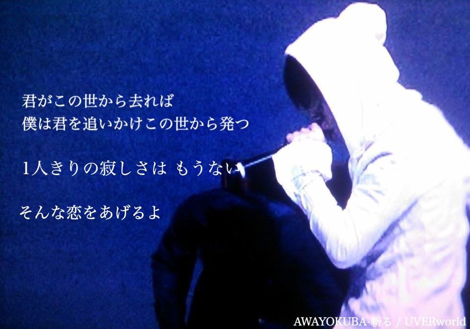 Uverworld Na Twitteru 君がこの世から去れば 僕は君を追いかけこの世から発つ 一人きりの寂しさはもうない そんな恋をあげるよ Awayokuba 斬る Uverworld好きな人rt Http T Co E6mrtwwczq