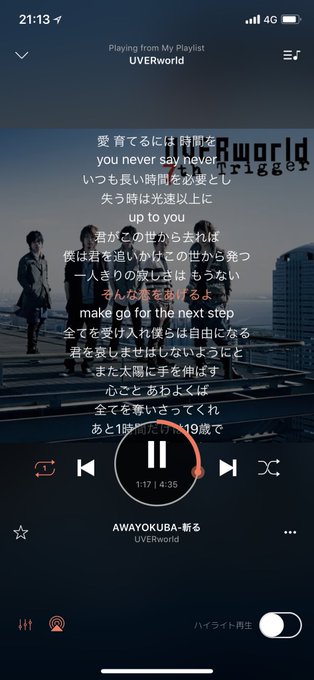 UVERworld の 7th trigger に収録されている AWAYOKUBA-斬る は無料で動画視聴ができます。アートワークや歌詞、テイストが似ているアーティストも表示されます。. Ai soda teru ni ha zikan wo you never say never. 今あるすべてを up to you愛って 口先で簡単に言えるけど究極の愛の姿ってどんなんだろう過去の恋愛の答えは「その全ては答えを出せずに消えて行った」ってこ….