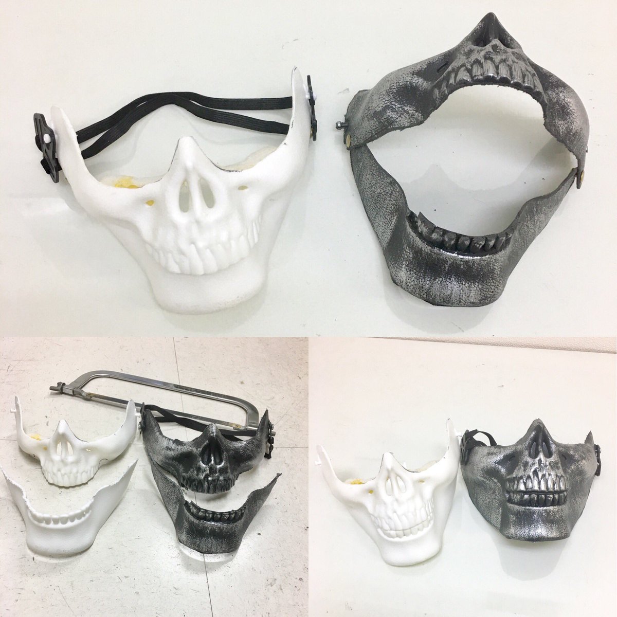 みなふぉん در توییتر 百均ガイコツマスク アゴが長いだけでなく カバー力がありすぎて 会話が不可能ということでアゴ外してみました ノコギリカット穴開けてカシメでジョイント口閉まるやん 優秀百均 マスク やっぱりフルオープンだと声が普通に聞こえる マスク 百