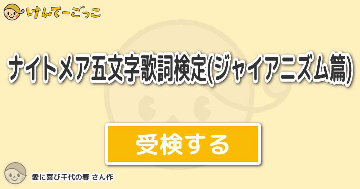 ナイトメア五文字歌詞検定 ジャイアニズム篇 By 愛に喜び千代の春 けんてーごっこ みんなが作った検定クイズが50万問以上