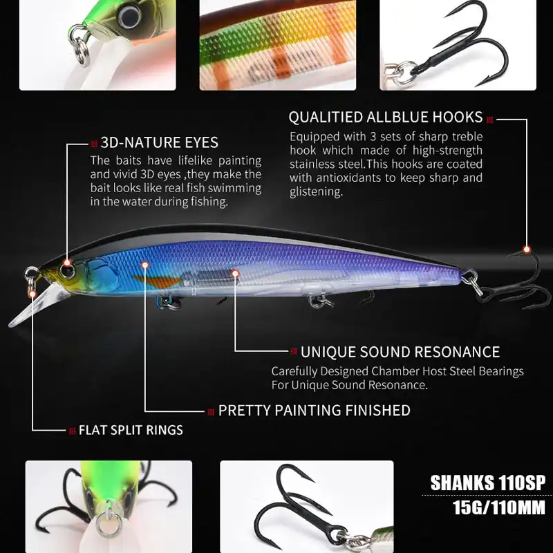 Allblueシャンクス110spワブラー一時停止ジャークベイト釣りルアー110ミリメートル15グラムのプラスチックミノー低音パイク人工ハード餌タックル Gooum