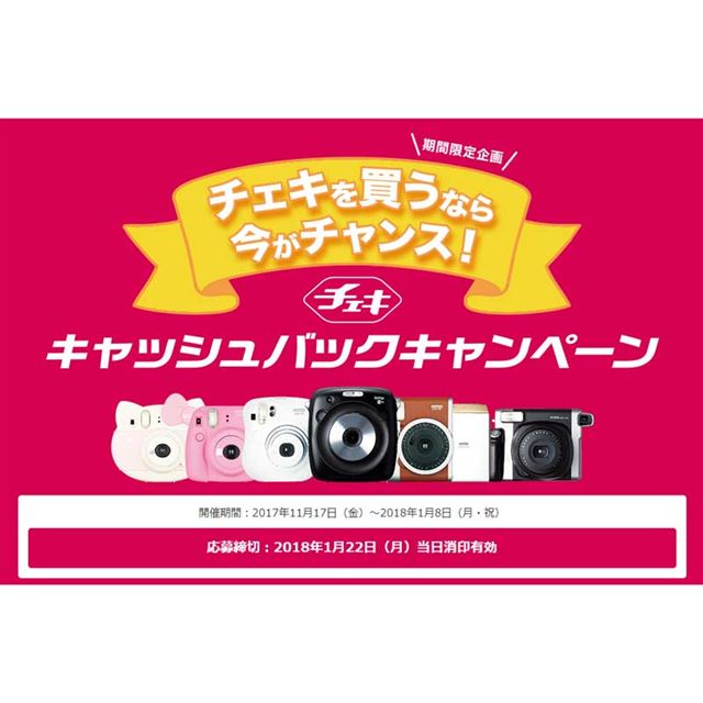 チェキ 購入者にキャッシュバックキャンペーン実施中 1月8日まで スマホ百貨