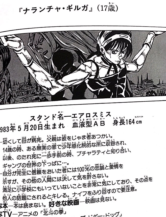 漫画百選 Com Twitterren ジョジョの奇妙な冒険 第5部 ナランチャギルガ 17歳身長164cm パッショーネ構成員 スタンド名 エアロ スミス 漫画百選 ジョジョの奇妙な冒険