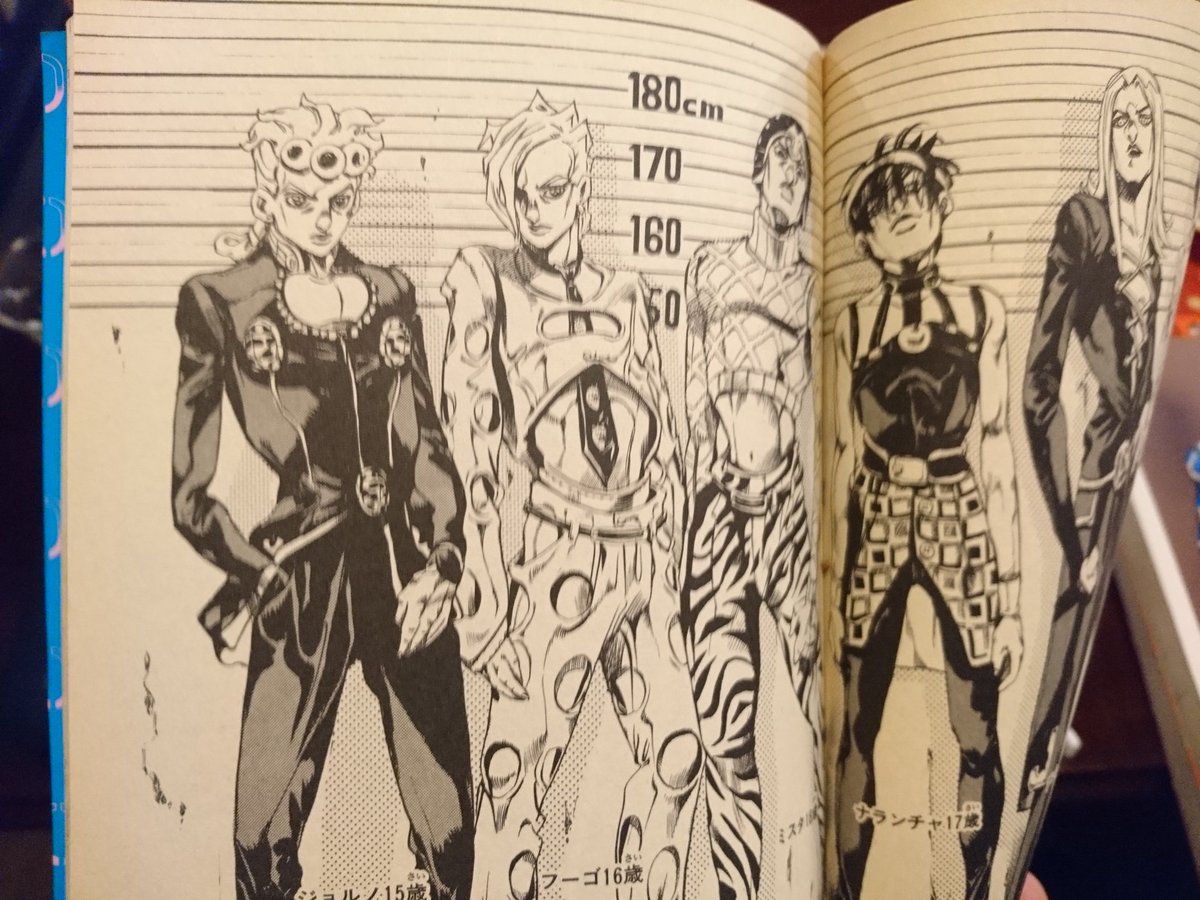 今日はジョジョリオン24巻発売です タワレコで気になったんだが 護衛チームアニメだからか身長みんな盛ってるんだな 原作 アニメ ジョルノ 172 175 ブチャラティ178 185 アバッキオ1 1 ミスタ179 1 ナランチャ164 170 トリッシュ163 163