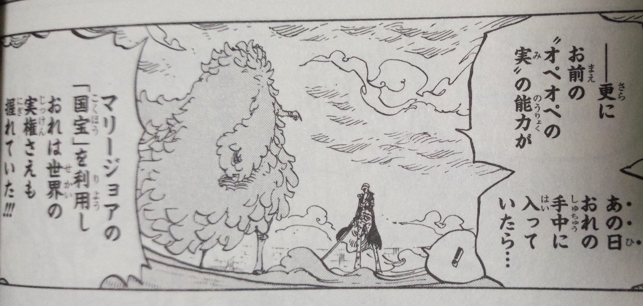 ハンセイ ドフラミンゴによると聖地マリージョアにある国宝は 存在自体が世界を揺るがす ものであり オペオペの実さえ手に入れていれば 世界の実権さえ握れていた そうで ワンピース Wj27