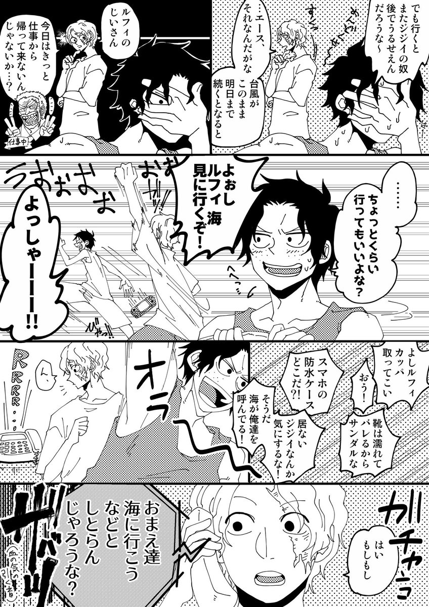 おじいちゃんと孫3人 ルフィ かわいい おじいちゃん イラスト 面白いイラスト