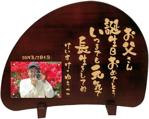 Amazon Co Jp 名入れ 名前入り 木製フォトフレーム 大サイズ 高さ30cm幅40cm 高級木材ヒバ 還暦 退職 父の日 プレゼント D ホーム キッチン