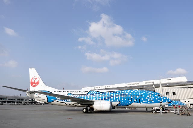 Jtaの ジンベエジェット に描かれたコバンザメが人気者に 那覇経済新聞