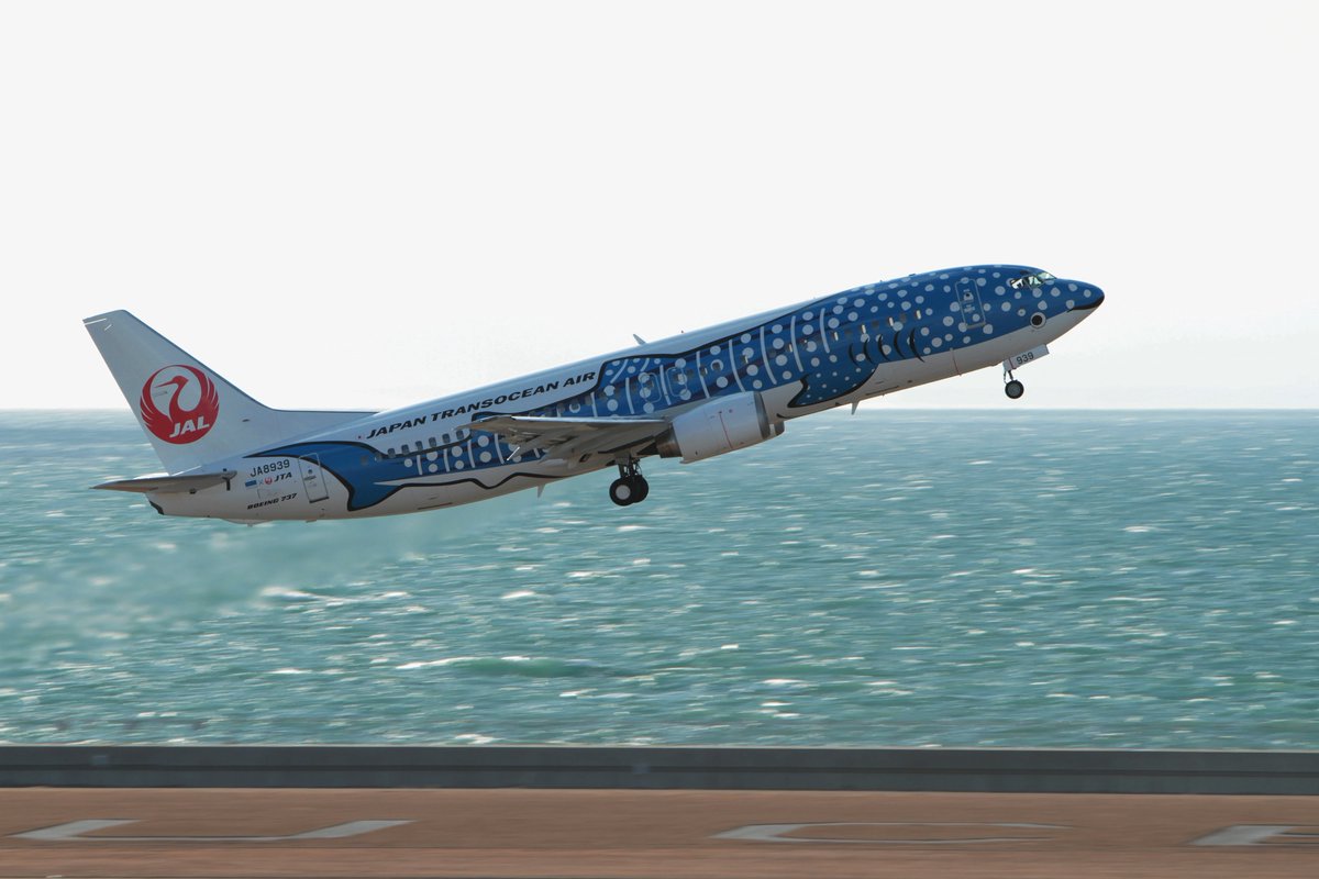 Jta 日本トランスオーシャン航空 見れたらラッキー ジンベエジェットの機体の秘密 沖縄美ら海水族館のジンベエザメを モデルにしたジンベエジェットの お腹には実はコバンザメが 機体下側なのでめったに見れませんが 那覇空港近くの瀬長島に行くと
