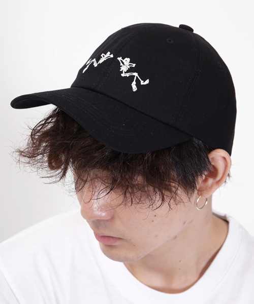 ローキャップ メンズ レディース 黒葉ロゴ つばドクロプリント の通販 ケイララ