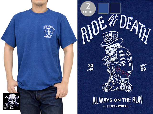 ロウブロウスカルインディゴ半袖tシャツ スカルワークス Skull Works ドクロ