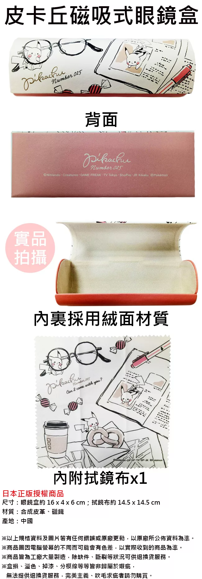 博客來 日本正版授權 皮卡丘皮質磁吸式眼鏡盒附拭鏡布神奇寶貝寶可夢