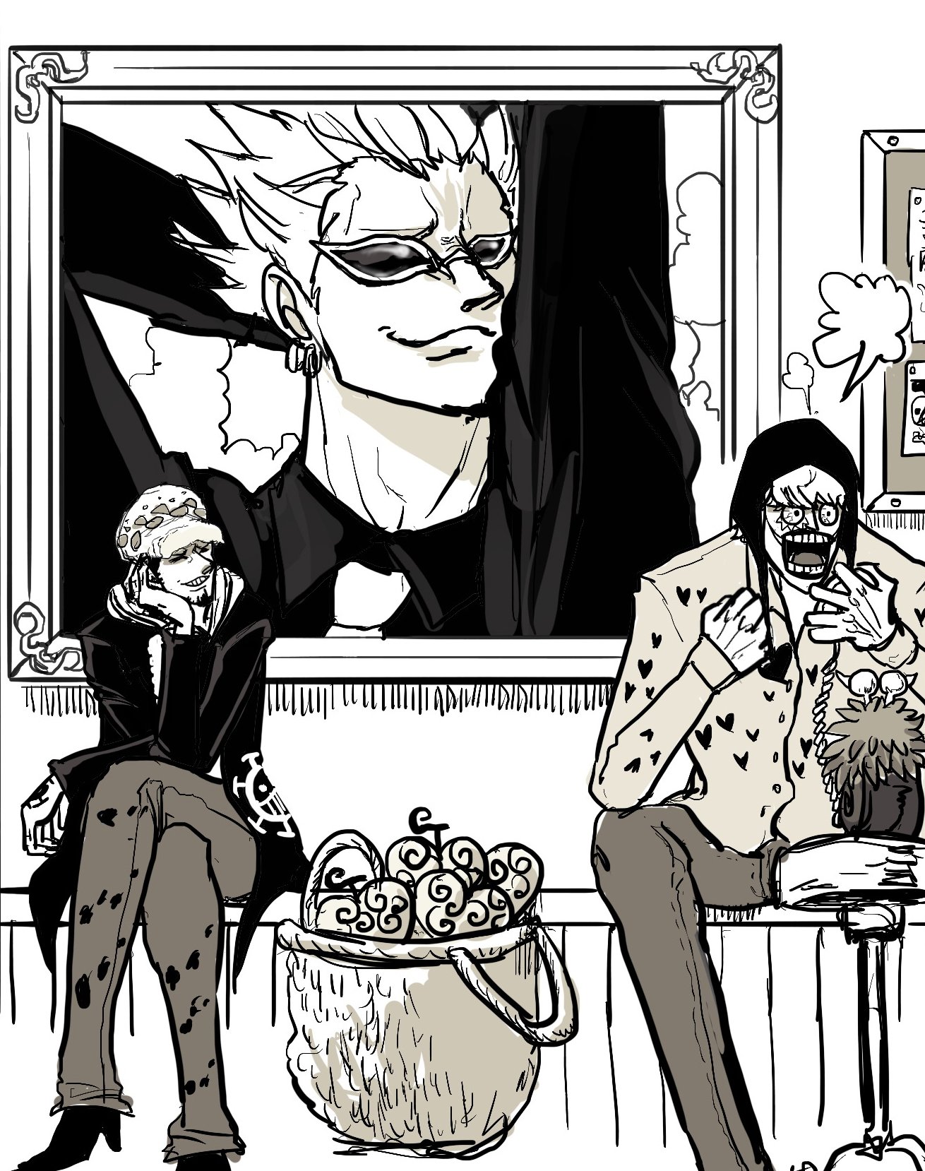 ウニ على تويتر ナミさんの新しいセクシー手配書引き延ばしを背に文句を付けるゲンゾウさんと苦笑いノジコパロ コラ ななななんなんだよ兄上この手配写真は ロー いいじゃねえかコラさん 近寄る虫は蹴散らすのみだ セクシー船長を持つとクルーは大変