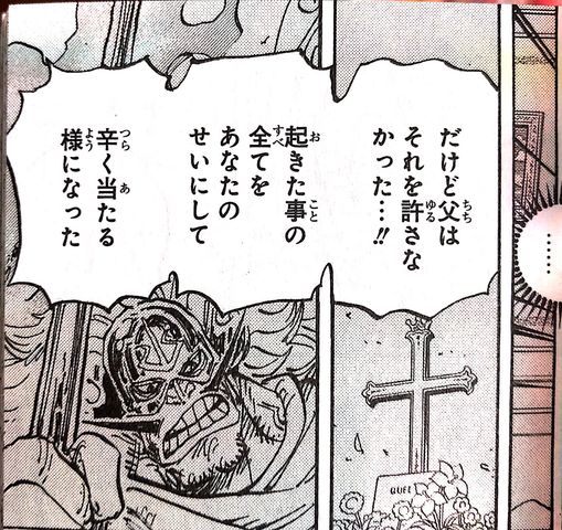 アプロ と確信していたり 気絶したマムに あんた一応船長だから報告するぜ とどこか投げやりに接しているあたり なんというか少なくともまっとうな母親としての愛情は微塵も期待されていないのだろうなと 生まれや境遇に同情の余地はあるが それ以上