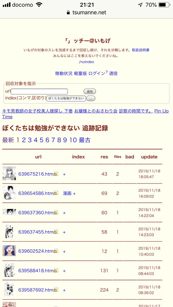 受信記録 いもげ